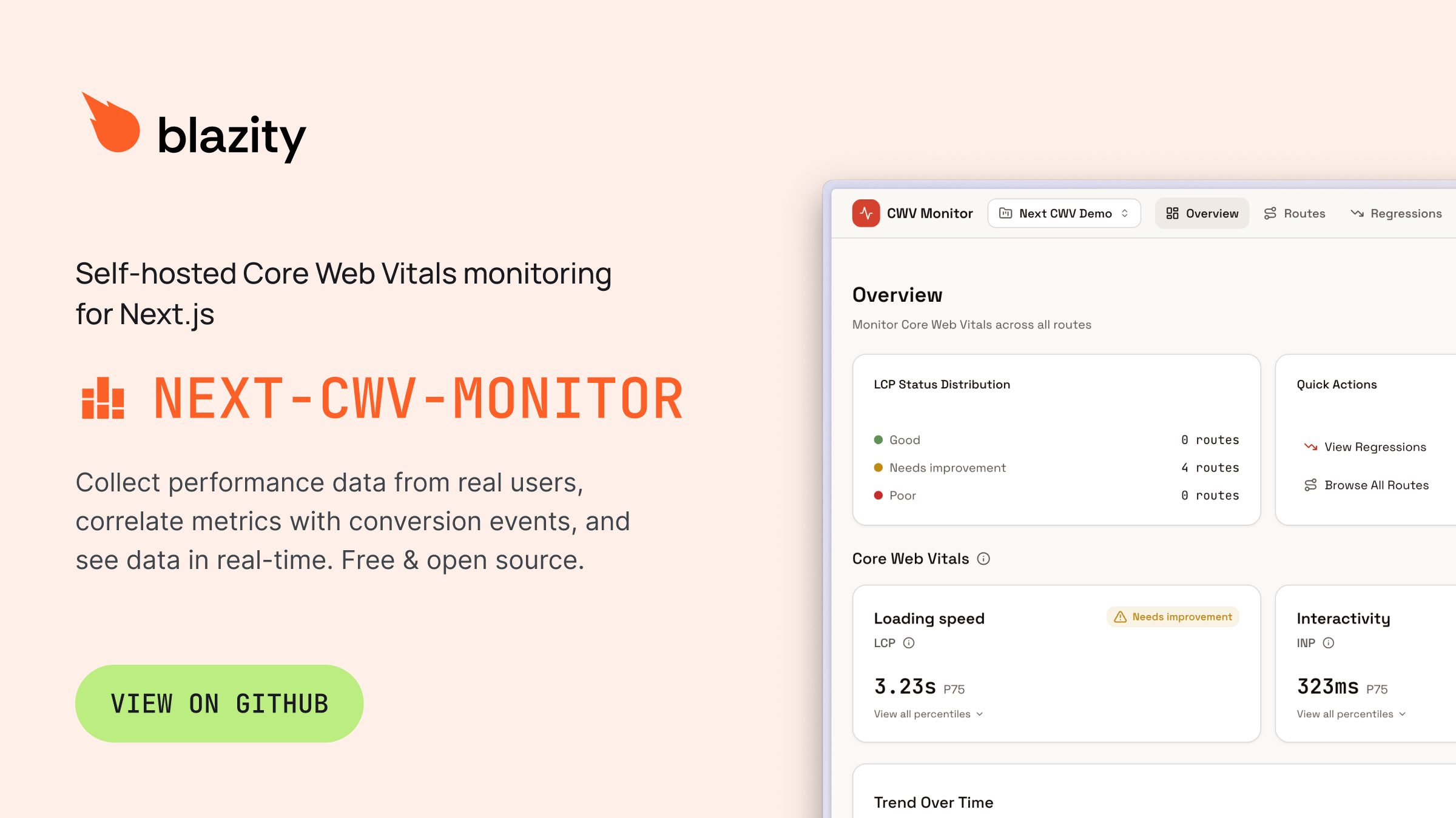 Built specifically for Next.js teams, it captures actual user metrics (LCP, INP, CLS, TTFB, FCP) and correlates them with the events that drive your business - signups, purchases, conversions.