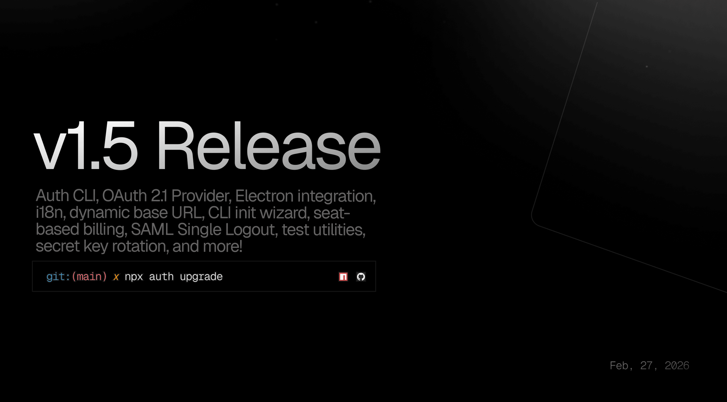 A huge release with 70+ features and 200+ fixes. Adds a new npx auth CLI, a full OAuth 2.1 provider, Electron support, typed errors with i18n, Cloudflare D1 support, and a self-service SAML SSO dashboard. Some breaking changes, so review before upgrading